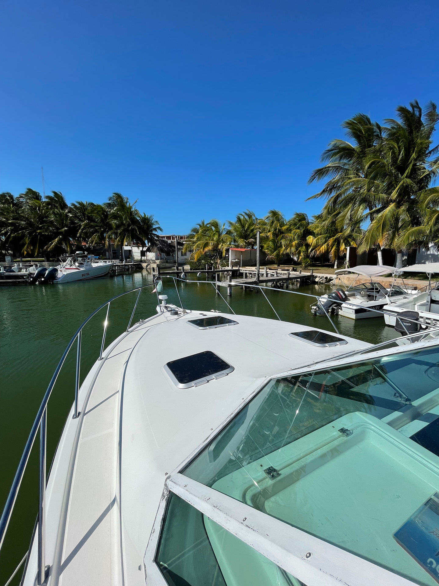 Incluye:Capitán y marinero, 4 bolsas de hielo, agua, tapete flotante, equipo de audio con Bluetooth, camastro al frente de la embarcación.